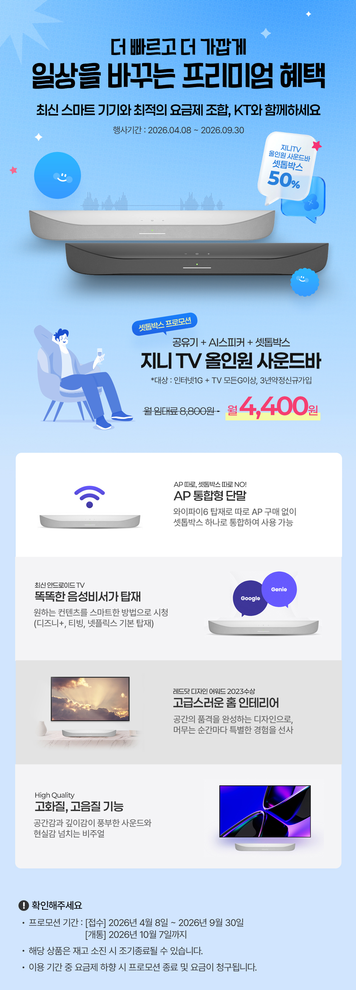 [셋톱박스 프로모션]지니 TV 올인원 사운드바 50% 혜택